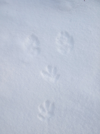 ません。雪がしまっていたり、さらっと雪積もると小さな前足の跡が見えない