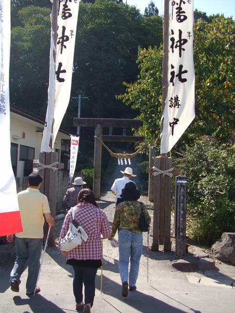 登り口の鳥居の所にストックが置いてあったが、結構急なので年配者にはありがたい。それっ婆ちゃん、ガンガレ~。