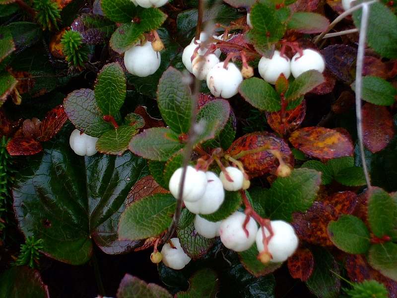 宮城県側は厚い雲に覆われているが稜線上はガスもなく視界良好、お釜もすっきり見える。熊野山頂には寄らずに真っ直ぐ熊野十字路へ。シラタマノキに実が鈴なりになっている。何度食べても複雑な甘いサロメチール味。すぐ噴き出す。